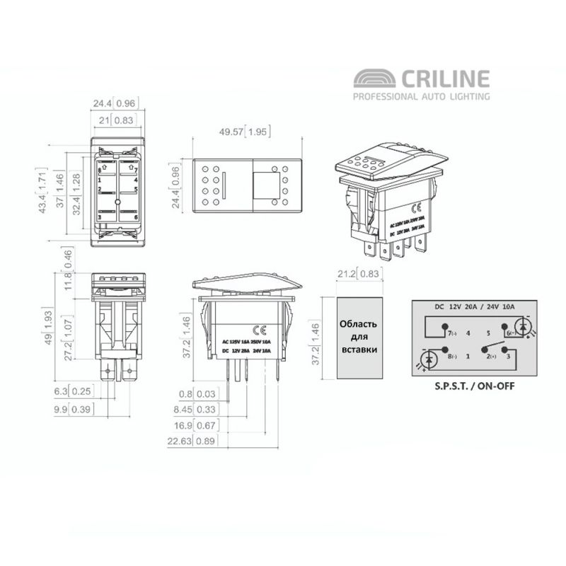 Описание товара5-контактная кнопка включения/выключения светодиодной оптики