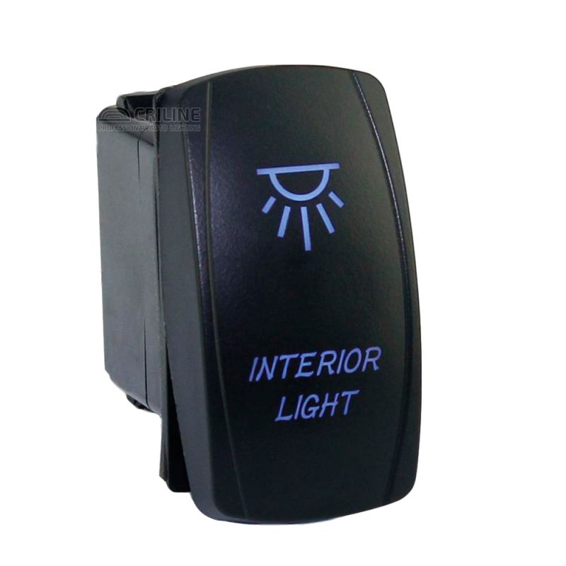 Имеет голубую подсветку. Надпись Interior Light.