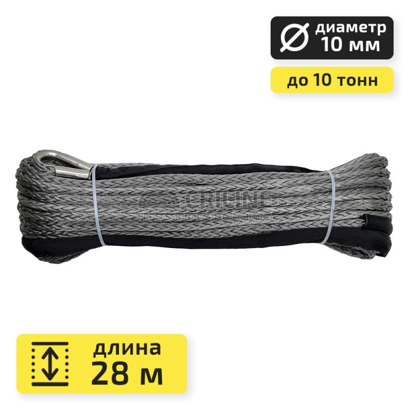 Описание товараСинтетический кевларовый трос для лебедки на квадроцикл или автомобиль 10 мм 28м