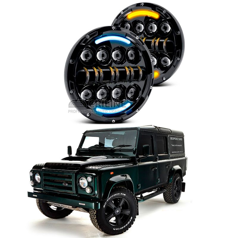 Штатно и без переделок встают на такие авто как Land Rover Defender и другие авто с посадочным местом 7 дюймов. Штекеры и проводка полностью подходят.