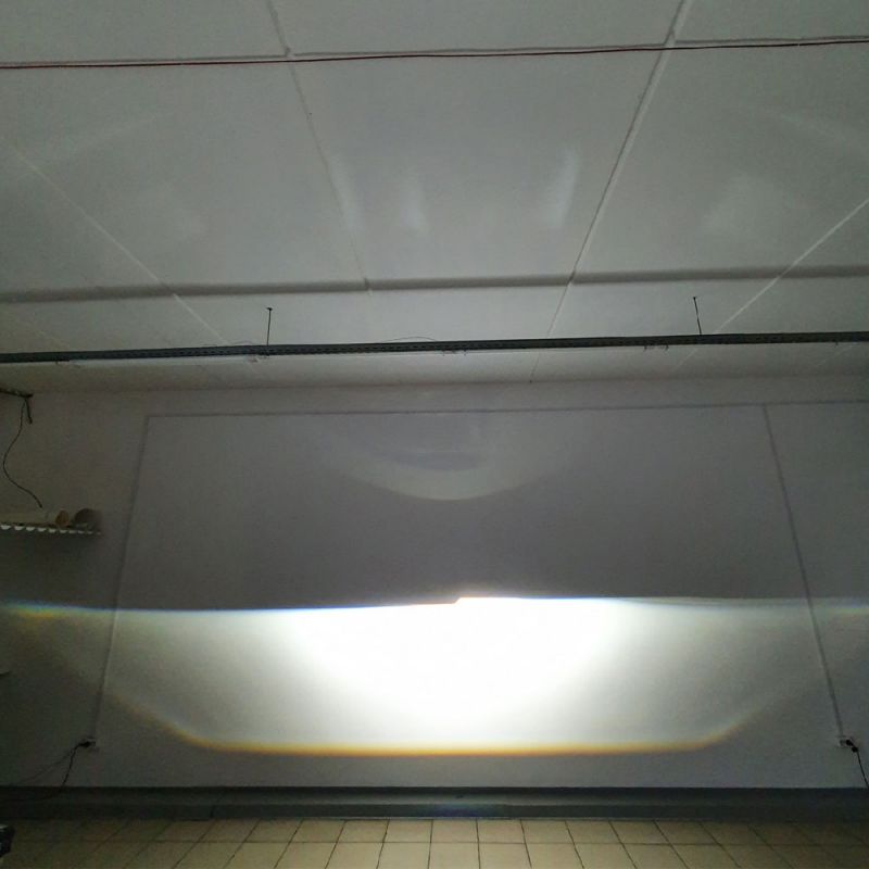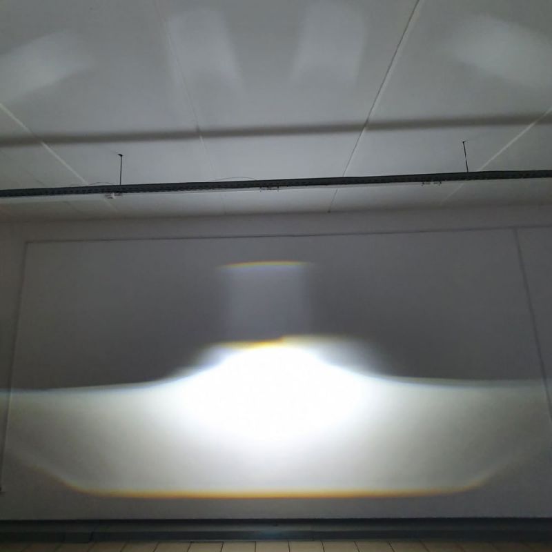Линзы показывают отличную ширину и правильную фокусировку горячего пятна. На ближнем свете они выдают 4326 Lux, на дальнем 5450 Lux. Светотеневая граница ровная, оба отражателя работают в синергии, на границе минимум синевы. Яркость не теряется и в боковых зонах, что гарантирует хорошее освещение обочины.