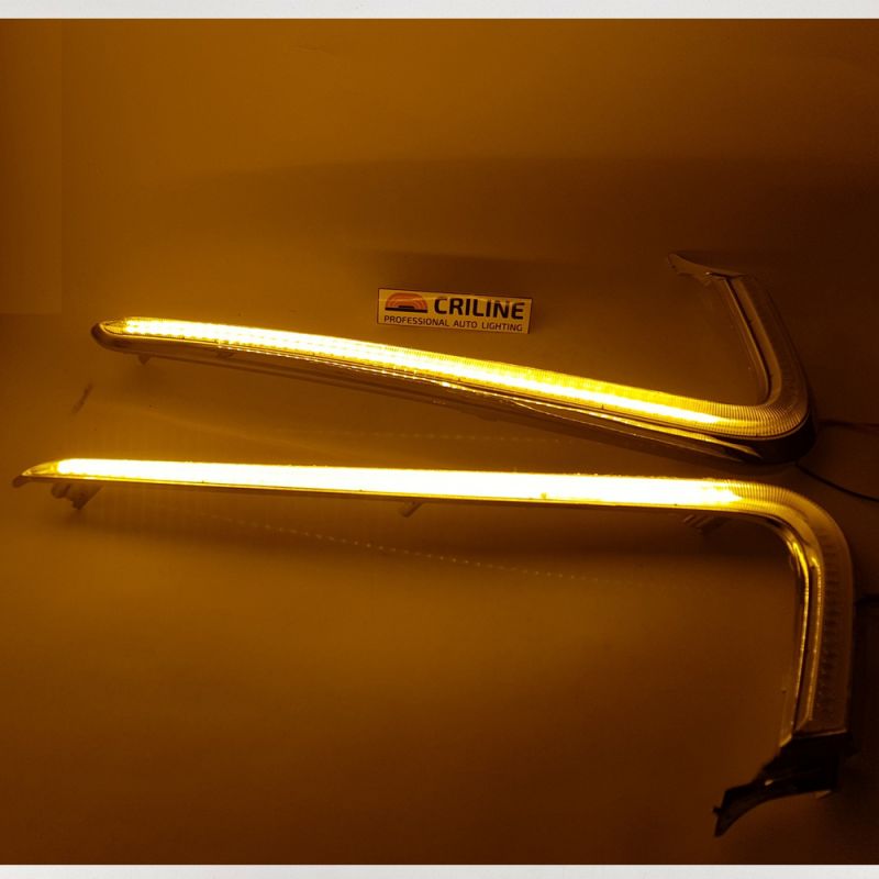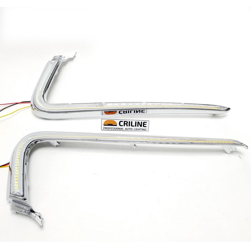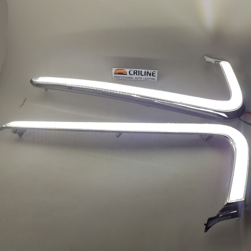Описание товараСветодиодные хромированные накладки на бампер с ДХО и функцией поворота для Лада Веста.