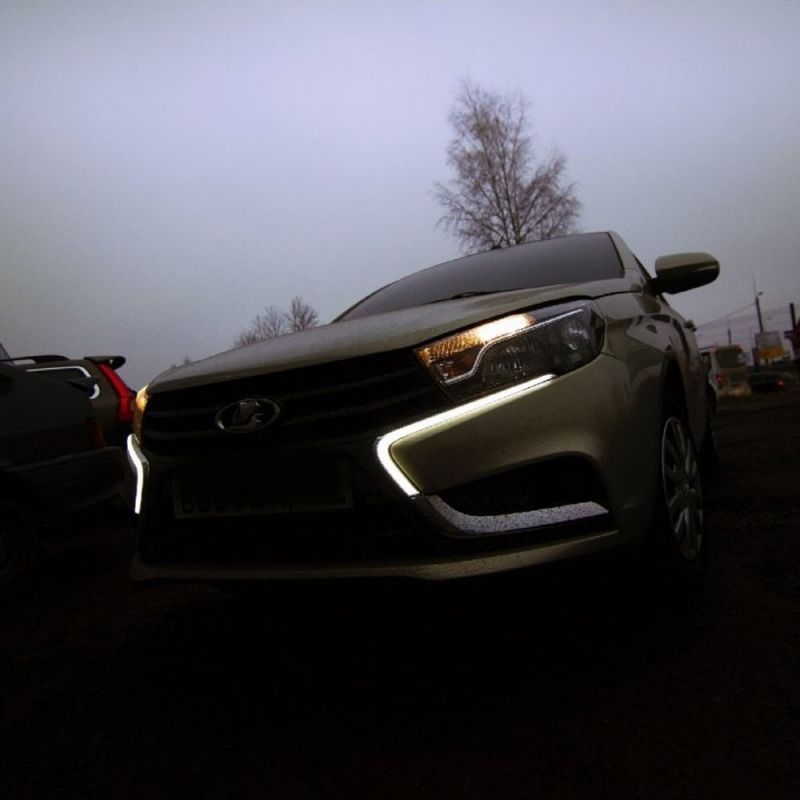 Яркие и стильные светодиодные дневные ходовые огни с функцией поворотника для автомобиля Lada Vesta.