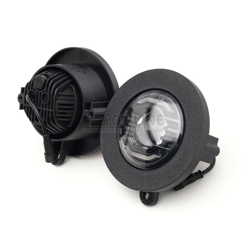 В этой "туманке" мы используем специальный чип 5050 мощностью 30 ватт с малым размером эмиттера 1.7 мм, что позволило нам получить чрезвычайно узкую линию первичной топовой засветки порядка 0.5 градусов и 3 градуса вторичной засветки. Такие углы недоступны даже в полноценных 3-дюймовых Bi-LED линзах.