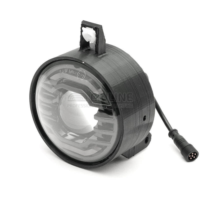 В этой "туманке" мы используем специальный чип 5050 мощностью 30 ватт с малым размером эмиттера 1.7 мм, что позволило нам получить чрезвычайно узкую линию первичной топовой засветки порядка 0.5 градусов и 3 градуса вторичной засветки. Такие углы недоступны даже в полноценных 3-дюймовых Bi-LED линзах.