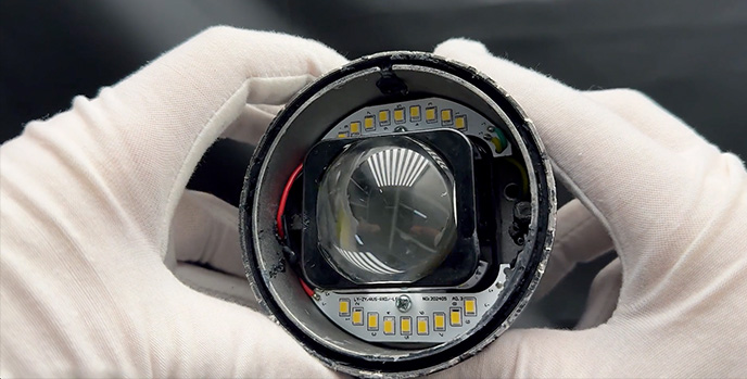 За формирование света отвечает мини-модуль с линзой 1,8 дюйма, такие модули используются в секциях головного света у современных автомобилей.