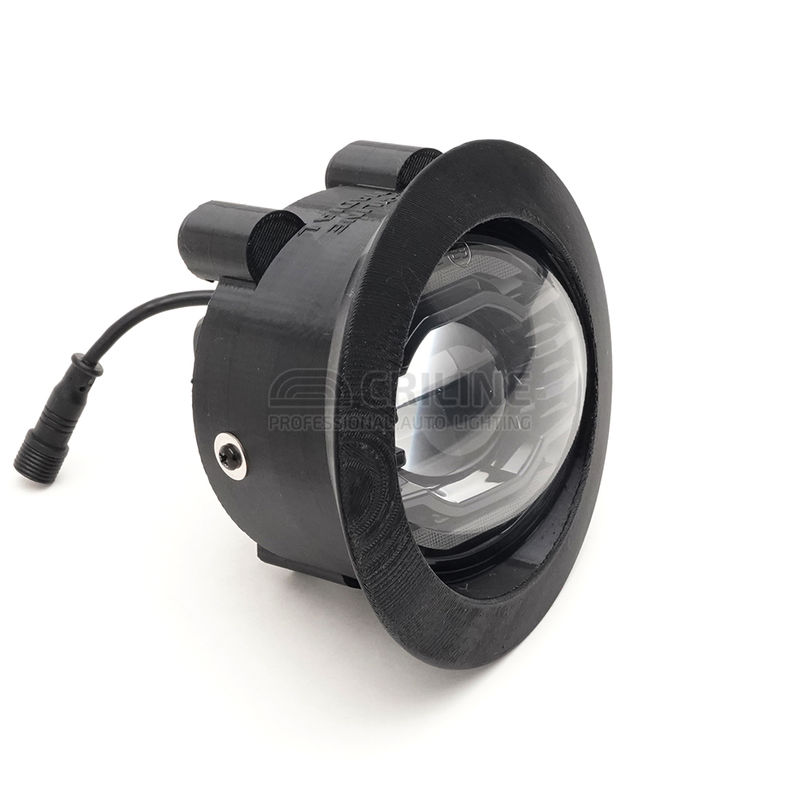 В этой "туманке" мы используем специальный чип 5050 мощностью 30 ватт с малым размером эмиттера 1.7 мм, что позволило нам получить чрезвычайно узкую линию первичной топовой засветки порядка 0.5 градусов и 3 градуса вторичной засветки. Такие углы недоступны даже в полноценных 3-дюймовых Bi-LED линзах.