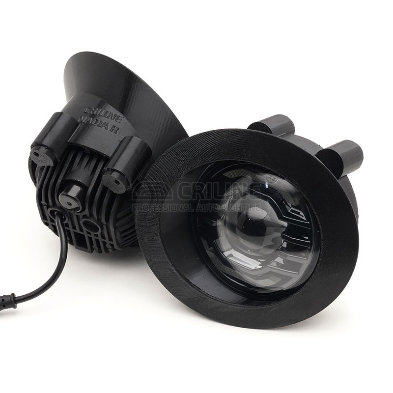 В этой "туманке" мы используем специальный чип 5050 мощностью 30 ватт с малым размером эмиттера 1.7 мм, что позволило нам получить чрезвычайно узкую линию первичной топовой засветки порядка 0.5 градусов и 3 градуса вторичной засветки. Такие углы недоступны даже в полноценных 3-дюймовых Bi-LED линзах.