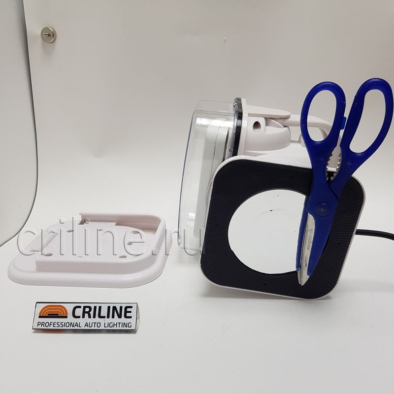 1) Магнитное основание - мощный ферритовый магнит в основании крепления позволяет быстро и легко установить прожектор на любую металлическую поверхность, а резиновое покрытие защищает от скольжения и повреждений;