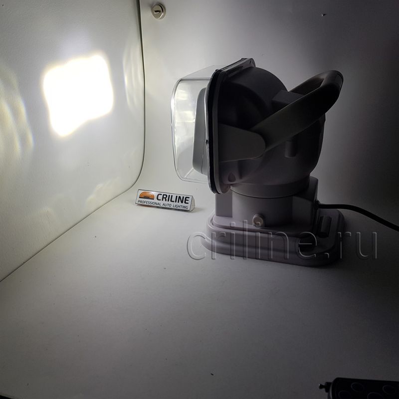 Фароискатель оборудован мощными светодиодными чипами Cree XPE (США). В сочетании с 4D линзами обеспечивает ультрадальний, мощный световой поток и равномерное освещение. Имеет широкий угол регулировки: в горизонтальной плоскости достигает 360°, а в вертикальной плоскости – 80°. Пучок узконаправленный, около 8 градусов без боковой засветки. Работает от напряжения 12-24 вольт от гнезда прикуривателя автомобиля. Яркость составляет 4560 люмен, а дальность засветки с сохранением освещенности 1 lux достигает до 1000 метров в зависимости от погодных условий.